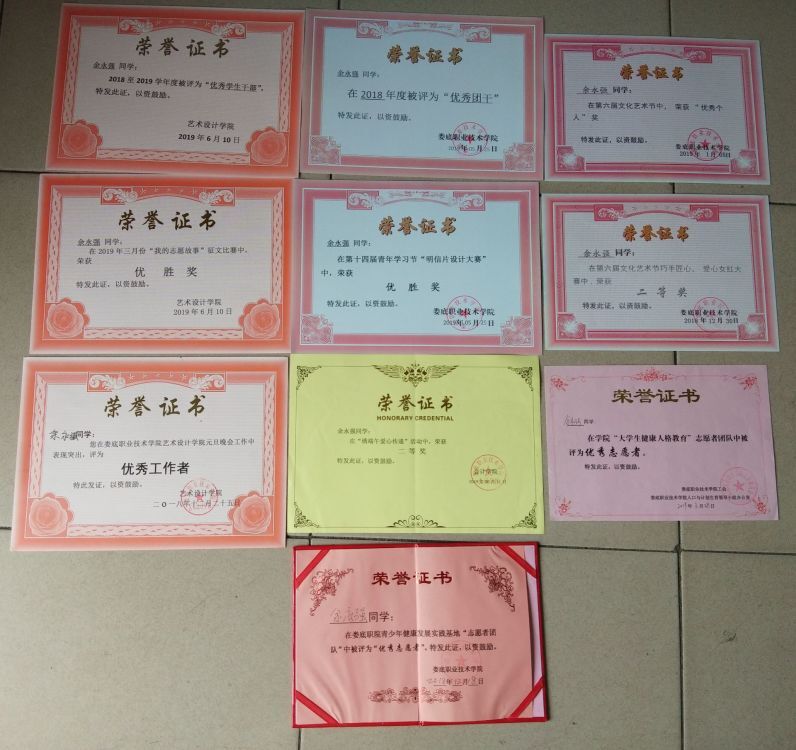 余永强所获荣誉证书