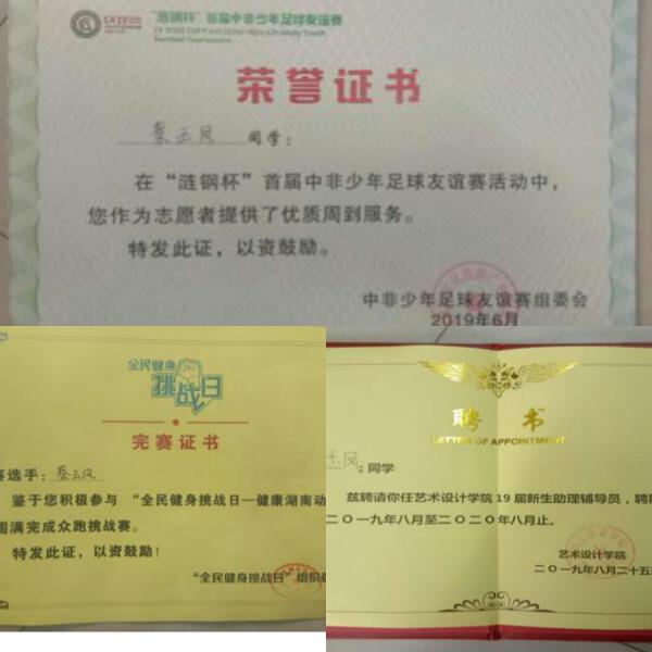 她作为院学生会心生部部长和班级班长,认真负责、积极向上,无论是思想素质还是工作能力,都以更高的标准严格要求自己。学习中的她积极进取,力争上游,在课堂上认真听讲,课后认真复习。工作上,无论是部长还是班长,她都以身作则,严于律己,把集体事务管理得仅仅有条,工作能力得到了老师、同学的一致肯定。她从一点一滴的小事做起,努力培养自己良好的生活习惯和道德修养,通过日常的学习和工作来增强自己的耐心、毅力、包容心以及凝聚力,时刻保持着积极向上的心态,做到乐于助人,关心团结同学,经常与同学沟通交流。无疑是一名优秀的模范学生干部,她便是18动漫一班的蔡玉凤。 在校期间,她担任过助理辅导员,充分利用学生身份,深入学生当中,及时、准确的了解学生的学习、生活、思想动态,成为了辅导员的好帮手。此外,她还积极参加学校、学院、班级举办的各项志愿者活动。如:中非足球比赛志愿者、平面模特大赛、暑假三下乡实践活动、民健身挑战日活动等。曾荣获院级平面模特大赛的优胜奖和校级“朋辈小天使”的称号。