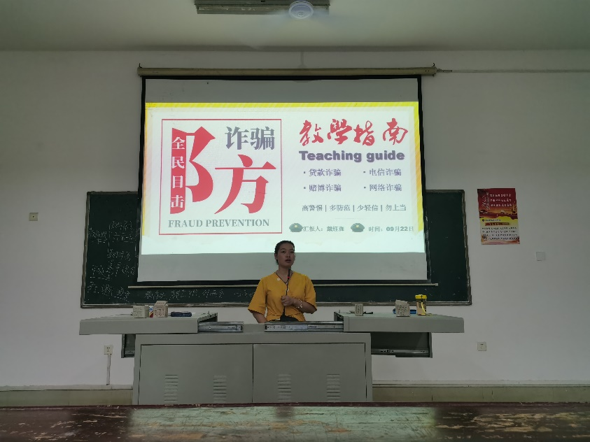 为了维护我们安静的学习环境,提升大学生的安全防范意识,使同学们能够在平时的学习工辅导员告诉同学们电信诈骗是指犯罪分子通过电话、网络和短信方式,编造虚假信息,设置骗局,对受害人实施远程、非接触式诈骗,诱使受害人给犯罪分子打款或转账的犯罪行为。诈骗犯无论手法如何翻新,最后都要落到一个点上,就是犯罪分子都要受害人的银行卡密码和短信验证码。千万不要轻信来历不明的电话、短信,不要轻易透露自己的身份证和个人信息。10月18日为了防止有电信诈骗的发生各班辅导员开展了防电信诈骗的主题班会活动。