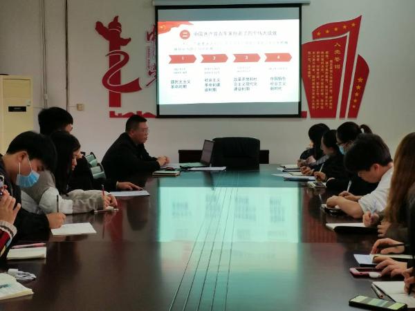 为延续红色精神传承,推动党史教育走深走实,切实将思想和行动统一到习近平总书记“七一”重要讲话精神上来,将建党百年迸发出来的澎湃热情,汇聚出积极向上的强大力量。10月28日下午4点30分,艺术设计学院学工党支部组织预备党员、入党积极分子于老培楼301召开以习近平“七一”重要讲话精神为主题的教育活动。由艺术学院党总支书记曾晓杰主讲,学工党支部书记张雯宇主持,组织委员曾莉,宣传委员邓梁,参加本次学习。