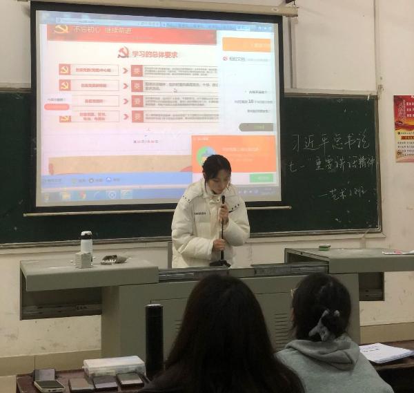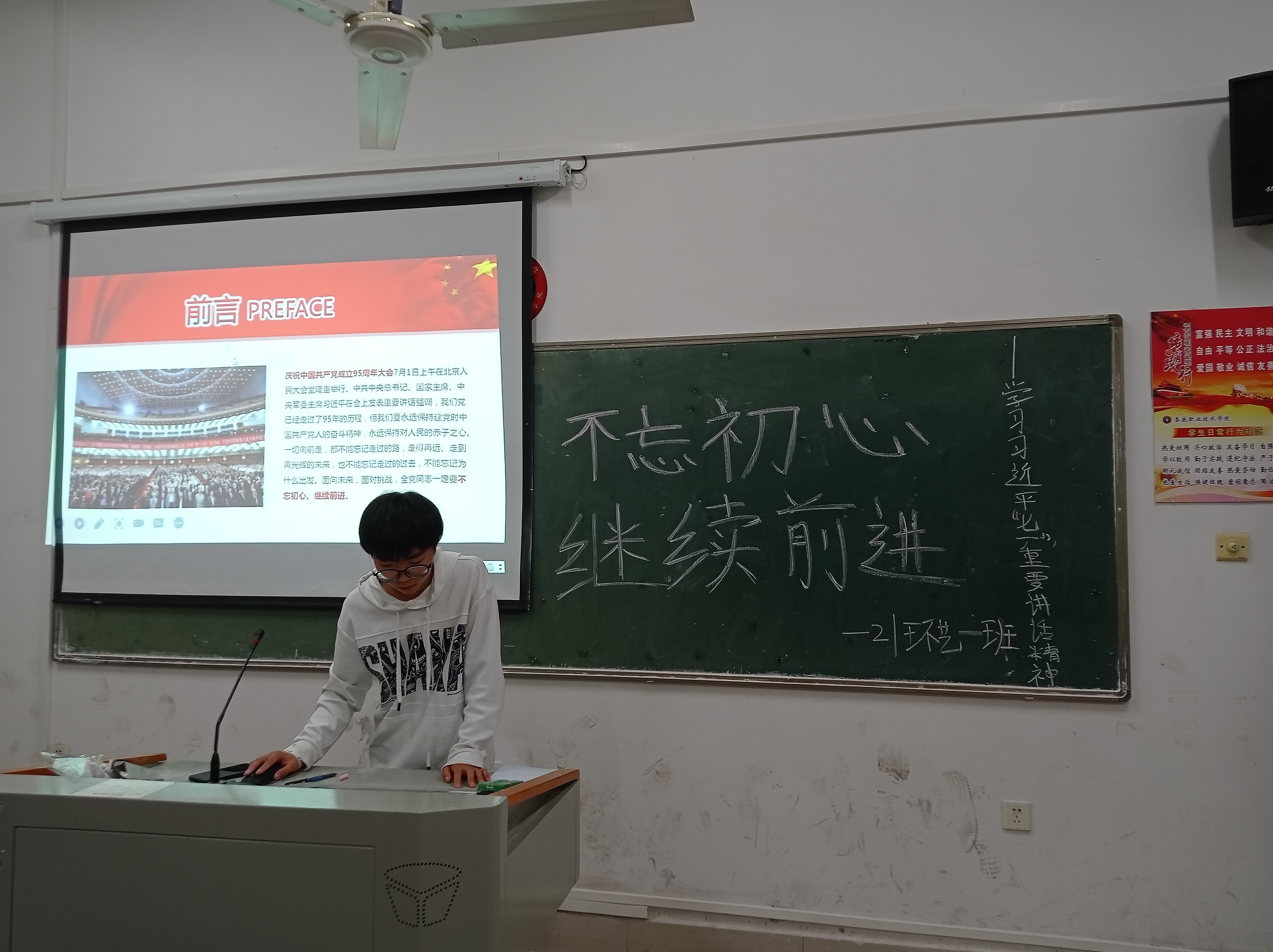 为进一步学习贯彻习近平总书记在7月1日庆祝中国共产党成立100周年大会上的重要讲话精神,我院于2021年11月17日下午18点20在主教楼开展“七一讲话精神”的组织活动,会议由团支书主持。首先由团支书带同学领唱《光荣啊,中国共青团》。