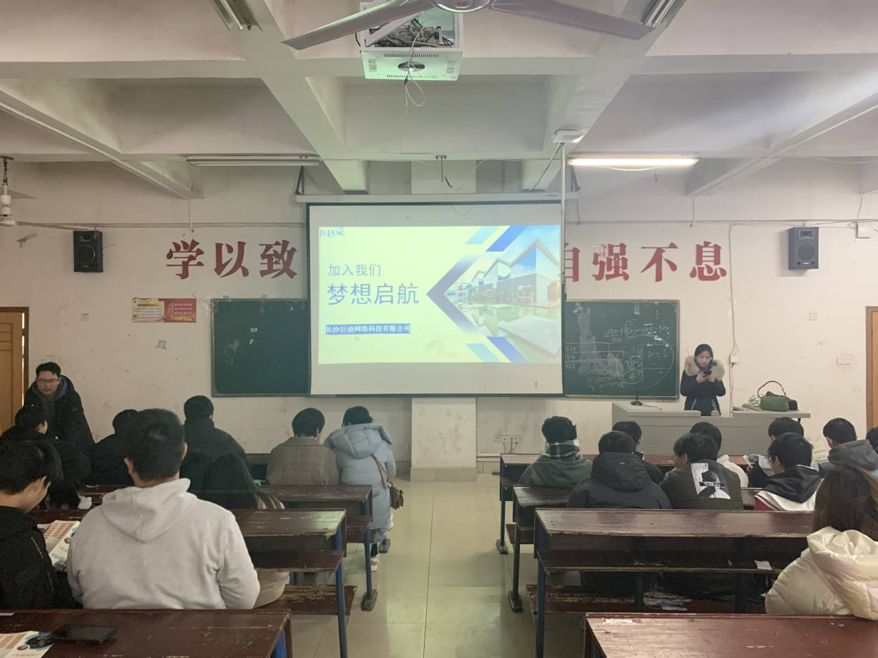 招聘会首先由巨浪公司王姣颜向在场同学放映PPT展示了公司的建立历程,公司成立于2013年9月29日,位于湖南长沙。公司一直致力于游戏动画、游戏CG动画的制作,力求为全球游戏行业提供优秀的动画服务。自成立起,先后与网易、腾讯、金山,搜狐畅游、英佩、墨麟、kabam、等知名游戏公司建立合作关系。2014-2019年以来,在网易的200多家CP商中,一直保持综合实力排名前十的成绩。