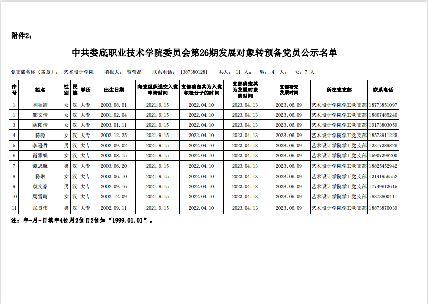 艺术设计学院第26期发展对象转为预备党员公示名单