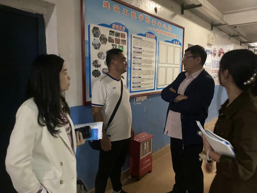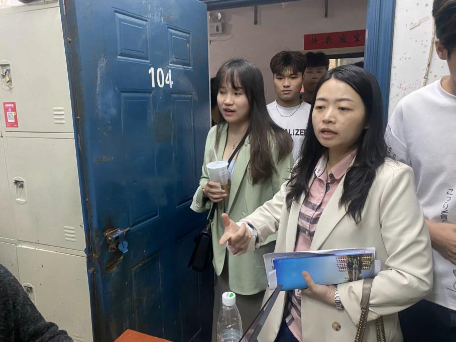 为了解5栋学生寝室状况,加强师生交流,且针对住宿安全情况,杜绝一切潜在的安全隐患,艺术设计学院于10月16日晚上,由学工党支部书记张雯宇带队全体辅导员及部分学生会干事,对五栋寝室进行整改劝导,并参观党员学生宿舍,确保安全排查工作的有序进行。