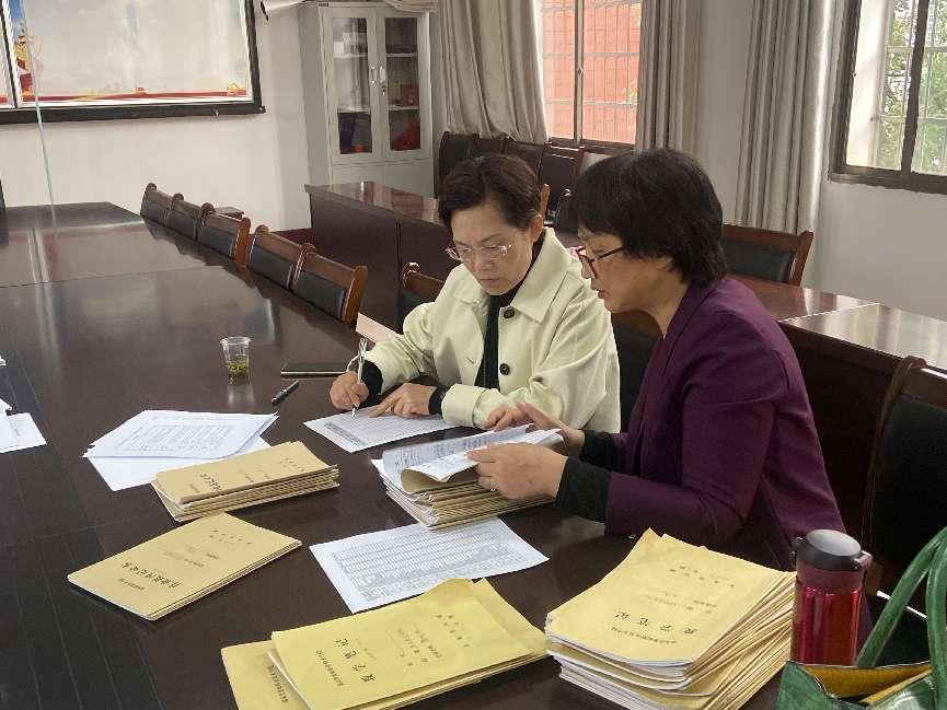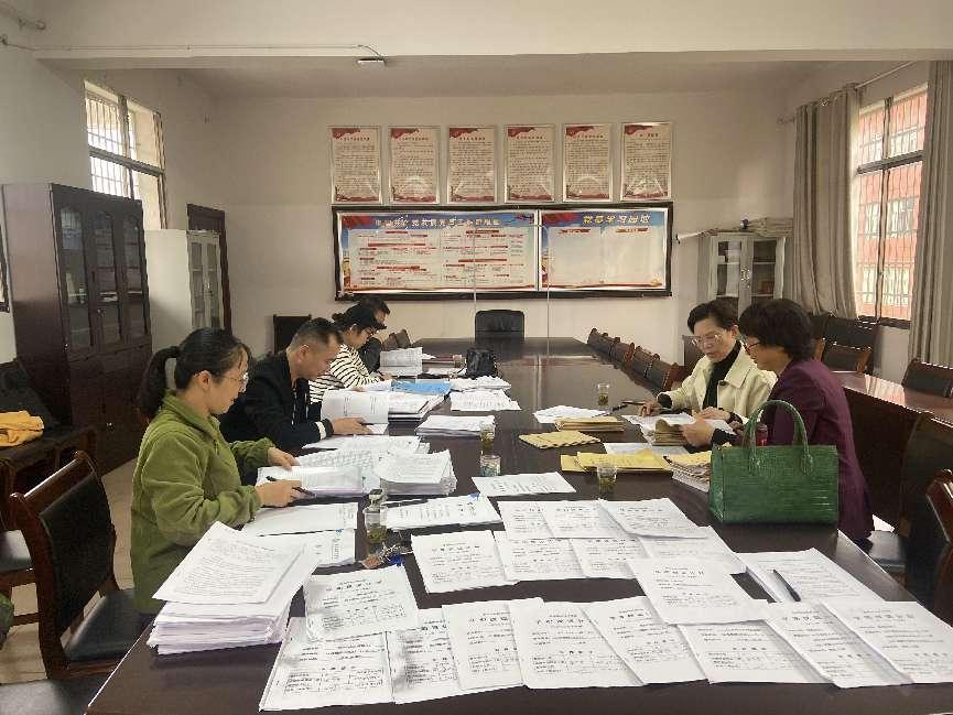 评委认真检查教师各项教学资料