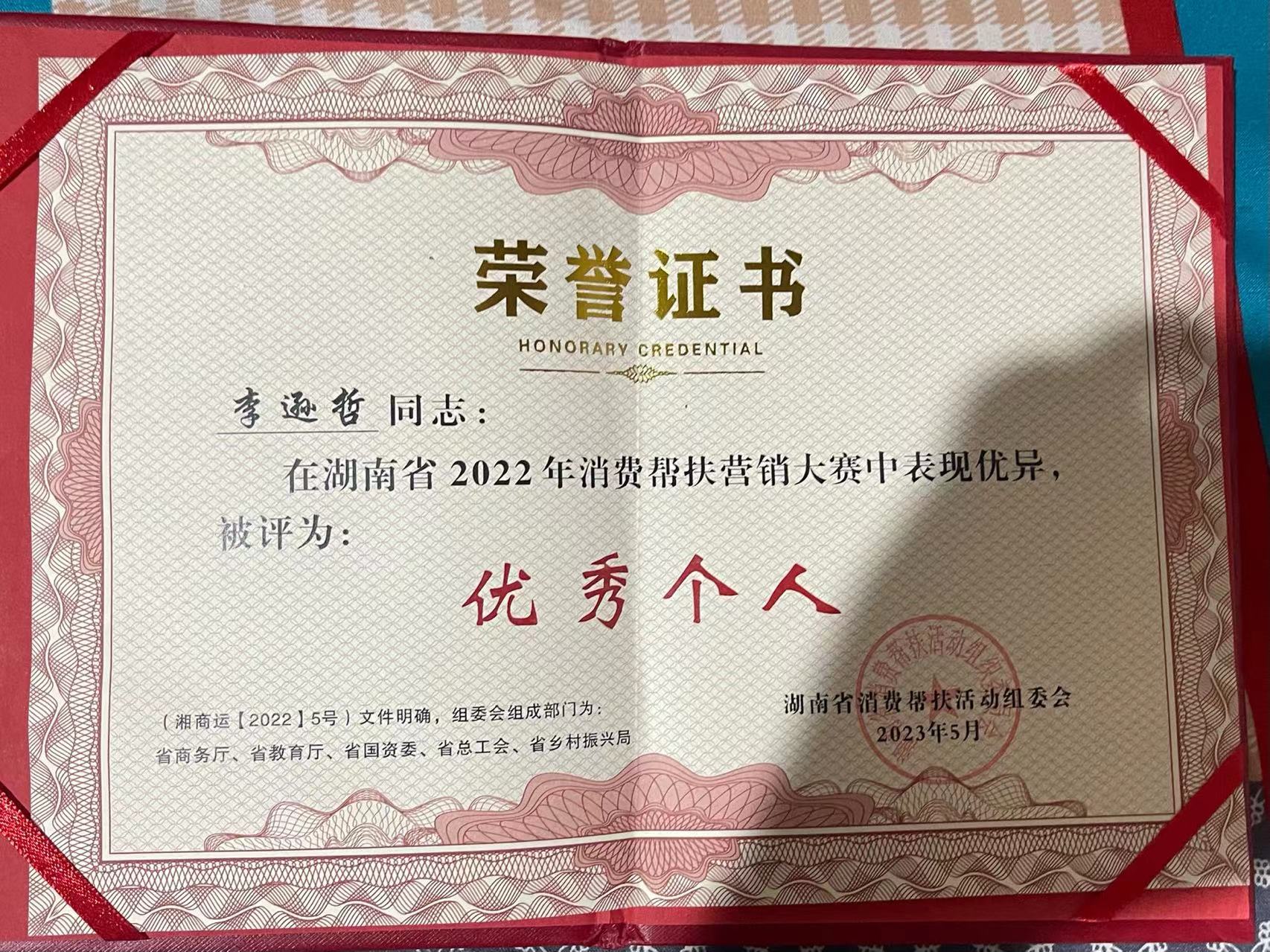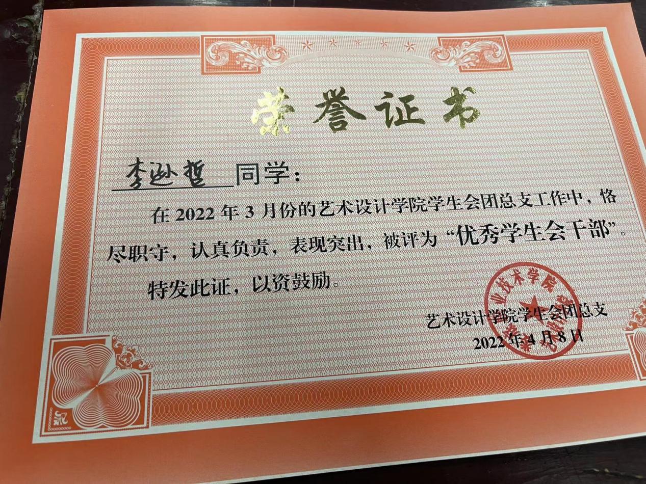 他的优秀可不止步于此,他的个人能力突出,在第七届学生会团总支担任心教部部长,并在任职期间,工作态度认真,尽心尽责,能帮助老师排忧解难,帮助同学解决心理方面的问题,被评为“优秀部长”。