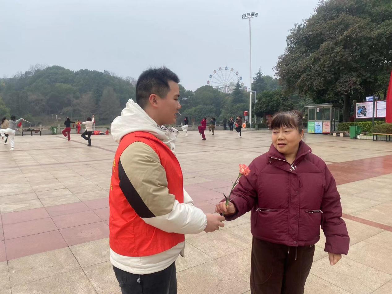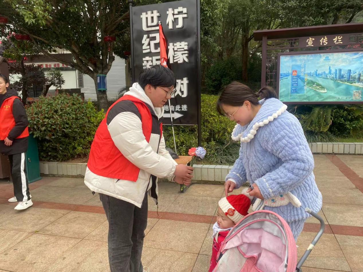 为响应习近平总书记“雷锋精神,人人可学;奉献爱心,处处可为”的号召,在学院全体师生中大力弘扬传承雷锋精神,进一步传播“奉献、友爱、互助、进步”的志愿服务精神,学院于3月6日上午开展“送你一朵小红花”娄底城区文明劝导志愿服务活动,由学工副院长张雯宇带队,23环艺1班等同学参加。