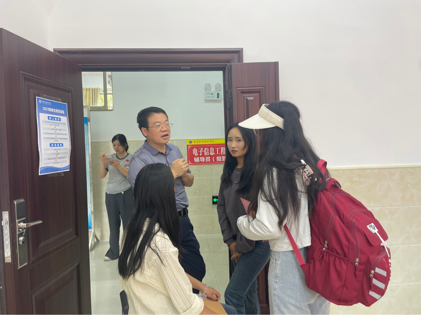 为了保证现场的秩序,做到让家长放心、新生安心,新生辅导员李美娇、杨小蝶咨询处前,协助新生办理入学手续。2日上午,艺术设计学院院长夏高彦、院党总支书记曾晓杰、学工副院长张雯宇来到新生接待工作现场,问候新生与志愿者们,为新同学送上了祝福和期望。希望新同学能在尽快适应大学学习生活,明确大学是新的学习生活的开始;希望各位家长和学生随时和辅导员沟通交流,并祝愿各位同学在大学开启人生新的梦想之旅。