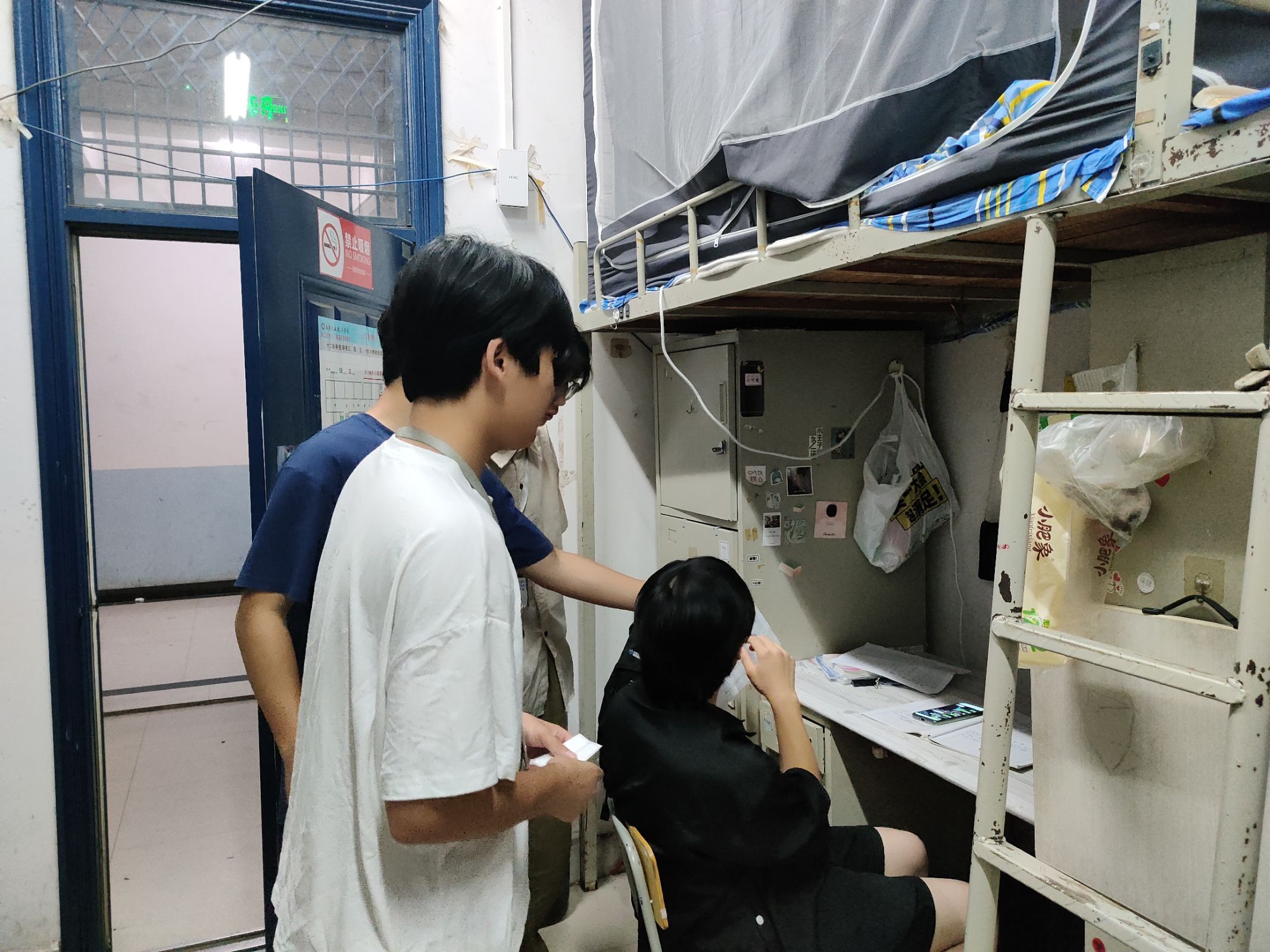 本次检查主要针对宿舍安全和卫生两方面,包括大功率电器的使用、插线板的摆放以及床铺、书桌的整理、地面、阳台的打扫。邓梁与辅导员在排查过程中亲切观察同学状态,与同学进行深入交流。检查发现学生宿舍整体情况良好,仅有个别宿舍出现插线板随意摆放、阳台堆放杂物、卫生较差等情况。老师们对存在的安全隐患和卫生等问题,现场提出了整改意见,并强调宿舍安全卫生的重要性,要求同学们严格遵守宿舍的相关管理规定,保持良好宿舍卫生和安全用电习惯。