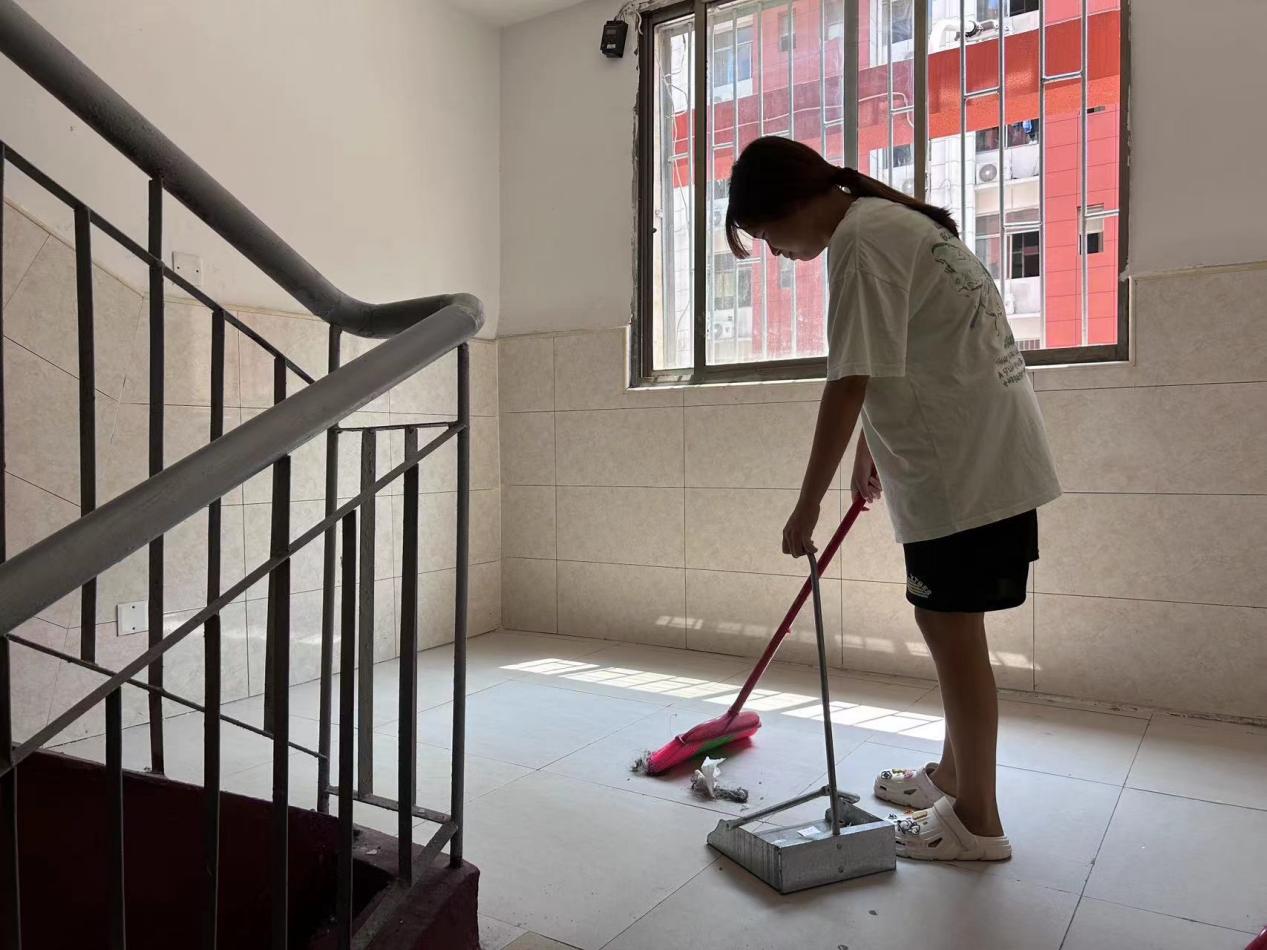 暑假过后,学生陆续返校,为营造干净卫生的校园环境,学院学工党支部于2024年9月1日中午开展劳动实践活动,将学院公共区域卫生彻底清扫,支部宣传委员邓梁带领党员发展对象、入党积极分子和部分学生会干部、对学院各个楼栋公共区域进行打扫。