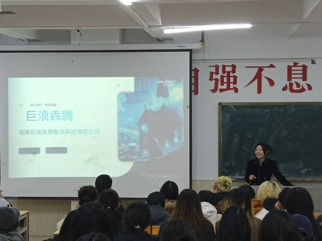 2024 年12月5日,艺术设计学院专为22级数媒、动漫专业在主教楼310教室,举办了湖南巨浪犇腾数字科技有限公司专场招聘会。现场气氛热烈非凡,为这两个专业的同学提供了极具针对性的就业契机与职业指引。