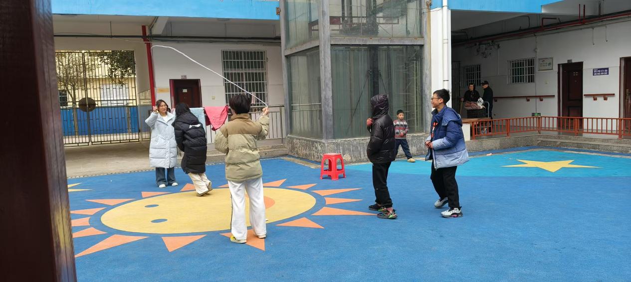 为了增加活动的趣味性和参与感,数媒项目班还特别设计了“接力跳绳比赛”和“创意跳绳展示”环节。在接力比赛中,孩子们被分成几个小组,每组由一名大学生带领,大家齐心协力,争取最快的速度完成接力,这不仅考验了团队协作能力,也让孩子们体验到了竞争的乐趣。而在创意跳绳展示中,孩子们发挥想象,用跳绳摆出各种图案和造型,展现了无限的创造力和童真。
