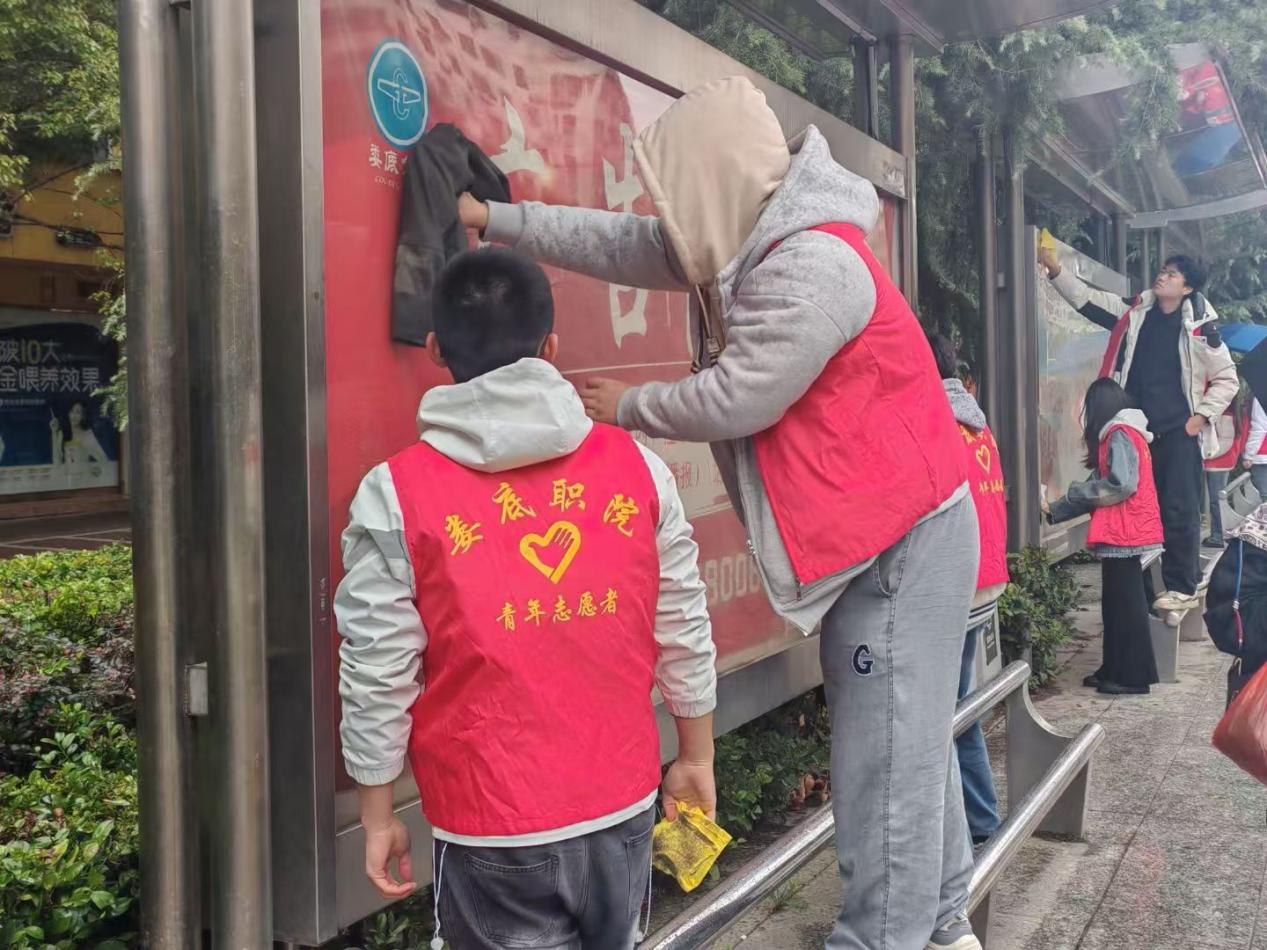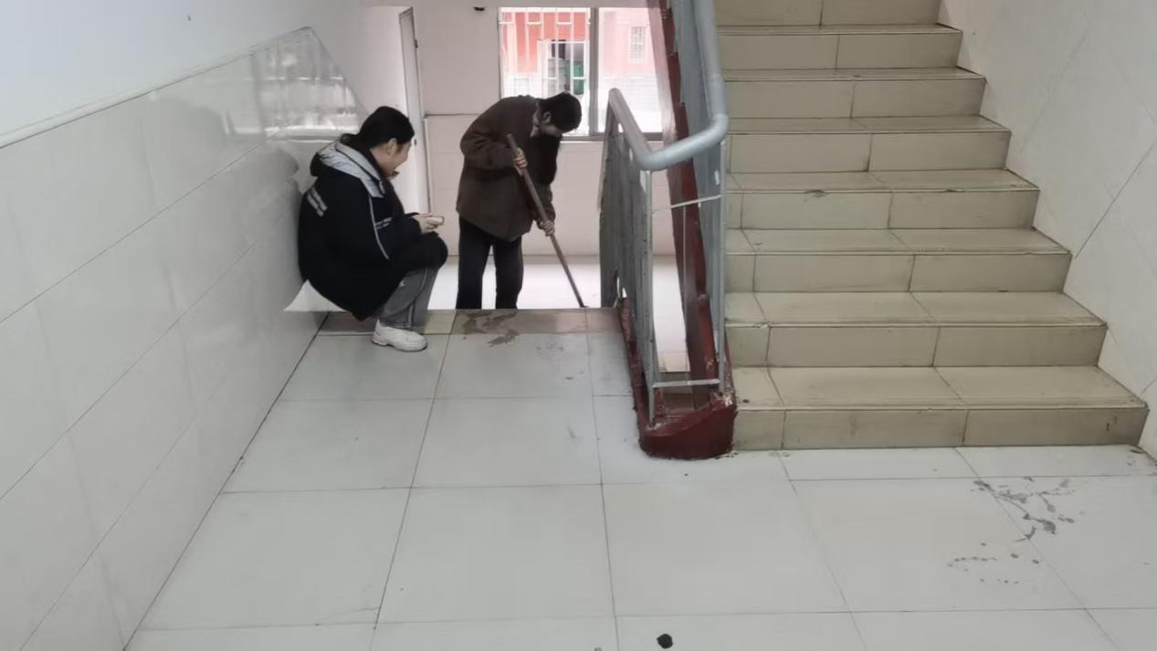 活动中,学生干部分工明确,各展所能。卫生清洁小组如同勤恳的“老黄牛”,全身心投入社区环境整治。面对楼道堆积杂物、地面污渍及墙壁小广告等难题,同学们不嫌脏累,认真清理。有的同学跪在地上用刷子用力刷洗地面,有的爬上梯子清理高处的污渍,汗水浸湿了衣衫也不停歇,充分彰显了踏实肯干、默默奉献的“老黄牛”精神。