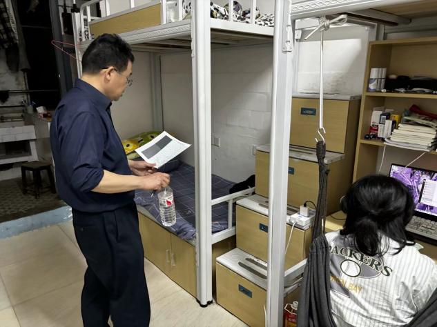 当晚8点10分,参与检查的学生干部准时在单车棚集合。学院精心安排了检查人员的分工,17栋曾晓杰书记带队、7栋夏高彦院长带队、16栋张雯宇副院长带队、12栋邓梁带队。确保检查评比过程的全面性和评比结果的公正性。