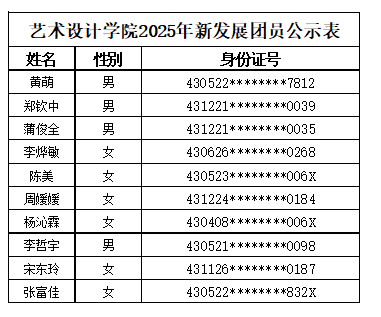 艺术设计学院2025年新发展团员公示表