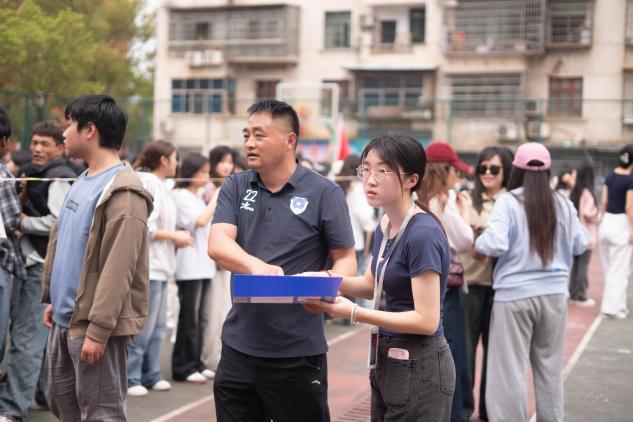 比赛现场,学院的学生会干部们也格外亮眼。从初赛到关键的晋级赛,他们每天都早早来到场地,为队员们呐喊助威。他们喊着响亮整齐的口号,用高涨的热情点燃现场气氛,给队员们注入源源不断的动力。