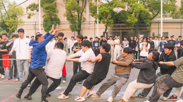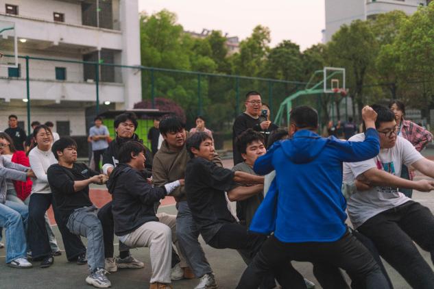 学院的运动员们更是赛场焦点。3月23日首战打响,队员们迅速进入状态,眼神中满是坚定与自信。他们双脚稳稳扎在地面,身体后仰,每一块肌肉都紧绷着,齐心协力紧握绳子,动作配合默契,力量完美融合。在与其他学院队伍的对抗中,即便面对僵持不下的局面,他们也从不言弃。喊着整齐有力的口号,一次次发力,每一次肌肉的颤动、每一滴挥洒的汗水,都彰显着顽强斗志。