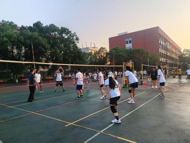 随着裁判哨声响起,比赛正式开始。赛场上,女生队员身姿轻盈敏捷,男生队员气势如虹,每一次传球、扣杀都配合默契,将团队协作精神展现得淋漓尽致。为了救球,队员们不惜飞身倒地;强力扣球时,手臂奋力挥出,气排球如离弦之箭。精彩的表现引得观众席上的学生会成员们热情高涨,他们高举横幅,齐声呐喊,加油助威声此起彼伏。