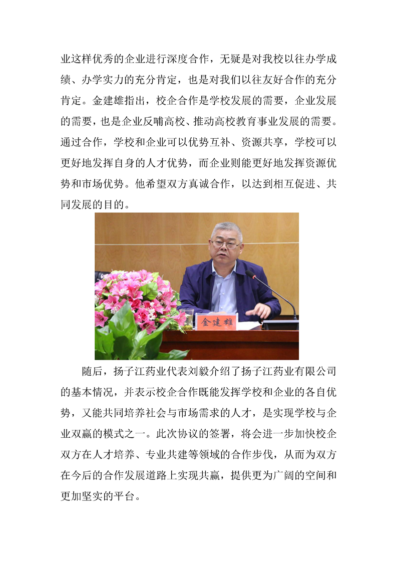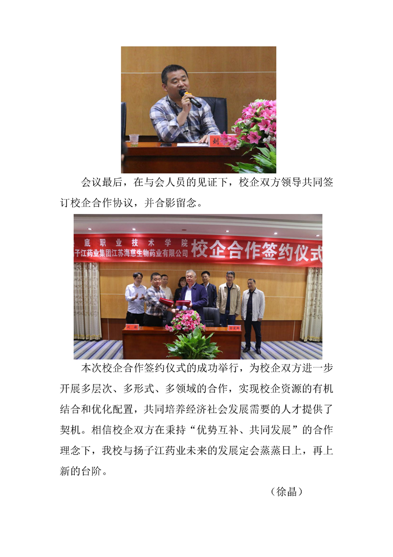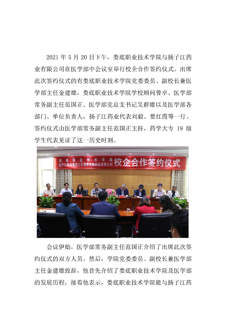 娄底职业技术学院与扬子江药业有限公司校企合作签约仪式成功举行