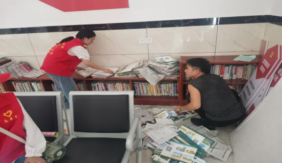 (图为志愿者们整理图书角)