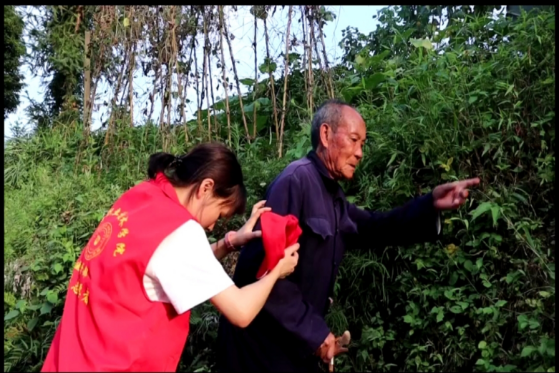 (图为志愿者送村里老人回家)