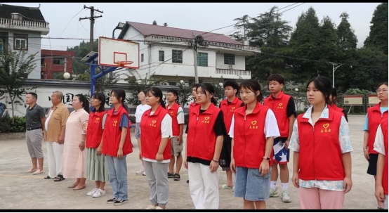 7月19日早上6点,志愿者来到芷溪村村部的广场进行了升旗仪式。随着国歌声响起,志愿者们神情庄重而肃穆,向国旗行礼,志愿者满怀对祖国无限热爱与崇高敬意的目光,鲜艳的五星红旗在广场徐徐升起,飘扬在芷溪村上空。随后志愿者跟随村干部来到芷溪村村部,学习党章党史,感悟革命前辈不屈不挠、不怕牺牲的革命精神,坚定听党话、跟党走的信心和决心。接着,志愿者们拜访了芷溪村的老党员,老党员们深情讲述了自己的入党初心、奋斗历程,给大家上了一堂特殊生动的党课,带领大家共同感悟了老一辈共产党员迎难而上、砥砺前行的奋斗精神。