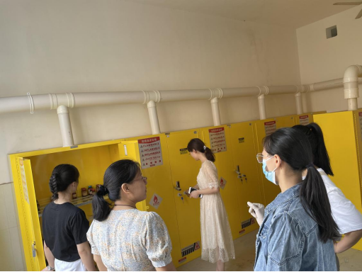 检查中,实验员老师汇报了本实训区的安全排查情况及存在隐患。检查组对各实验室的水、电、通风安全、实验室卫生情况进行了深入细致的检查,对危化品仓库和气瓶安全进行了重点检查。