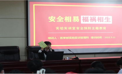为培养医学部学生实验实训室安全意识,加深学生对实验实训室安全的了解,增强学生应对实验实训室突发事故的防范能力。5月11日中午12:00,医学部实验实训管理科在学术报告厅开展以“安全相易,福祸相生”为主题的实验室安全预防教育讲座,医学部在校学生参加了此次讲座。