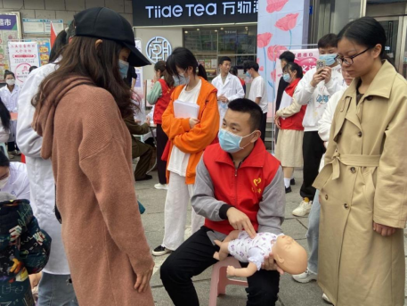 我院师生志愿者在医学部学生会和社区工作人员的精心组织下,有条不紊的为社区居民提供了量血压、心肺听诊、内科咨询、中医咨询、康复咨询、营养咨询、眼视光咨询、心肺复苏、海姆立克急救术现场教学等医疗服务。