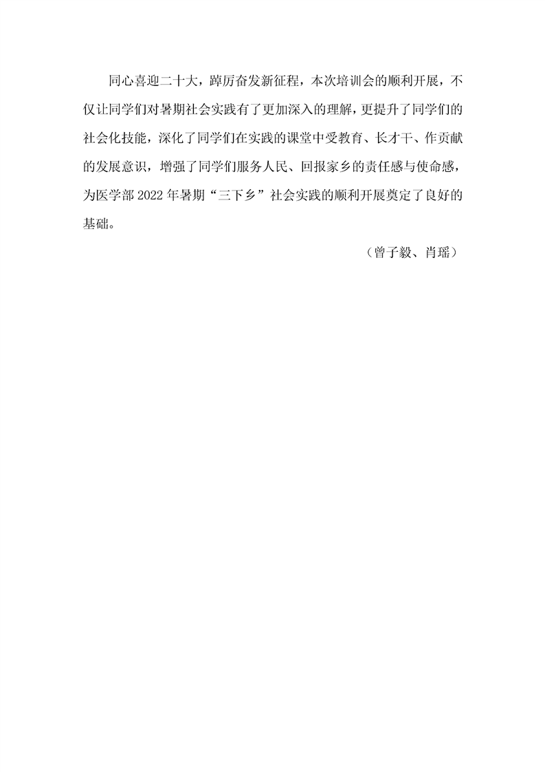 医学部2022年大学生暑期“三下乡”活动前培训圆满结束