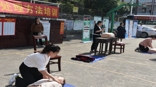 娄底职院全国科普教育基地的老师队伍来到双峰县梓桥中学和双峰县梓桥小学。在操场上,护理学院的老师们为孩子们现场演示了一堂应急教育课,详细讲解了心肺复苏术和海姆立克急救法(成人和婴幼儿)。活动现场,在模型和宣传资料的双重展示下,孩子们的学习热情非常高,并纷纷踊跃到模型上进行实操练习,学习氛围活跃。