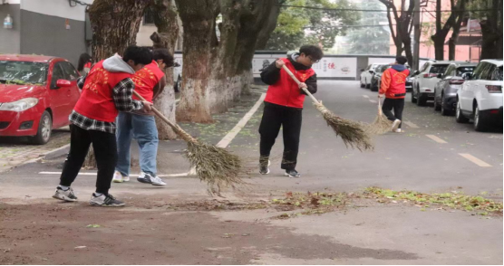 活动开始前,指导老师根据社区楼栋数量将志愿者们分为了8个小组,每个小组负责一栋楼房的清扫。活动过程中,志愿者们发扬不怕脏、不怕累的服务精神,拿起工具,有序分工,协同行动,分别对小区道路、绿化带、卫生死角的烟头、杂物等进行全面清扫。经过一下午的劳动,社区内的环境卫生焕然一新。
