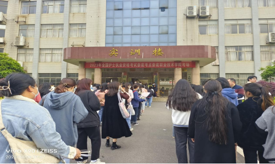 2023年4月9日至10日,护士执业资格考试在娄底职业技术学院实训楼进行。送考教师组织考生乘车提前抵达考场,排队候检入场,并嘱咐考生不要紧张,做题时要认真细心。我校共1340名护理及助产专业考生顺利参加了此次考试。