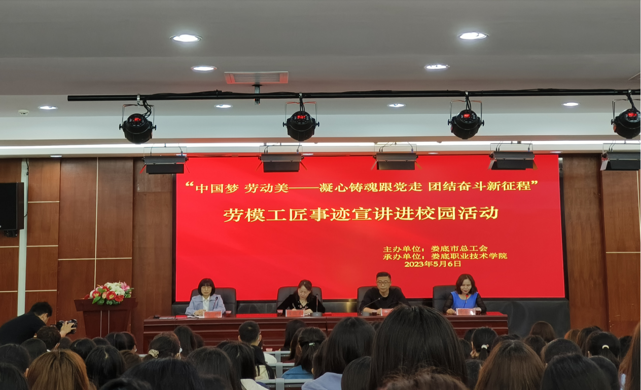 2023年5月6日下午,为积极宣扬“劳模工匠”精神,娄底职业技术学院工会、校团委、医学部特邀娄底市中心医院ICU主任谢瑜在医学部学术报告厅开展了“劳模工匠事迹进校园”讲座。娄底市总工党组成员、副主席、机关党总支书记李迎春、娄底职业技术学院工会常务副主席曾素纯、校团委书记石磊、医学部团总支书记曾子毅出席讲座。