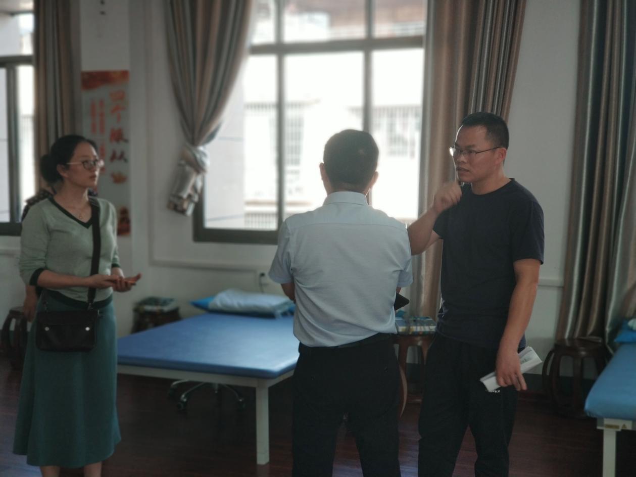 最后,一行人在康复医学科主任李正龙、门诊中医内科主任文向东的带领下实地参观中医康复中心,并就如何开展中医康复技术学习进行了深入交流,就中医康复行业创新创业、基层就业前景等问题进行了探讨。