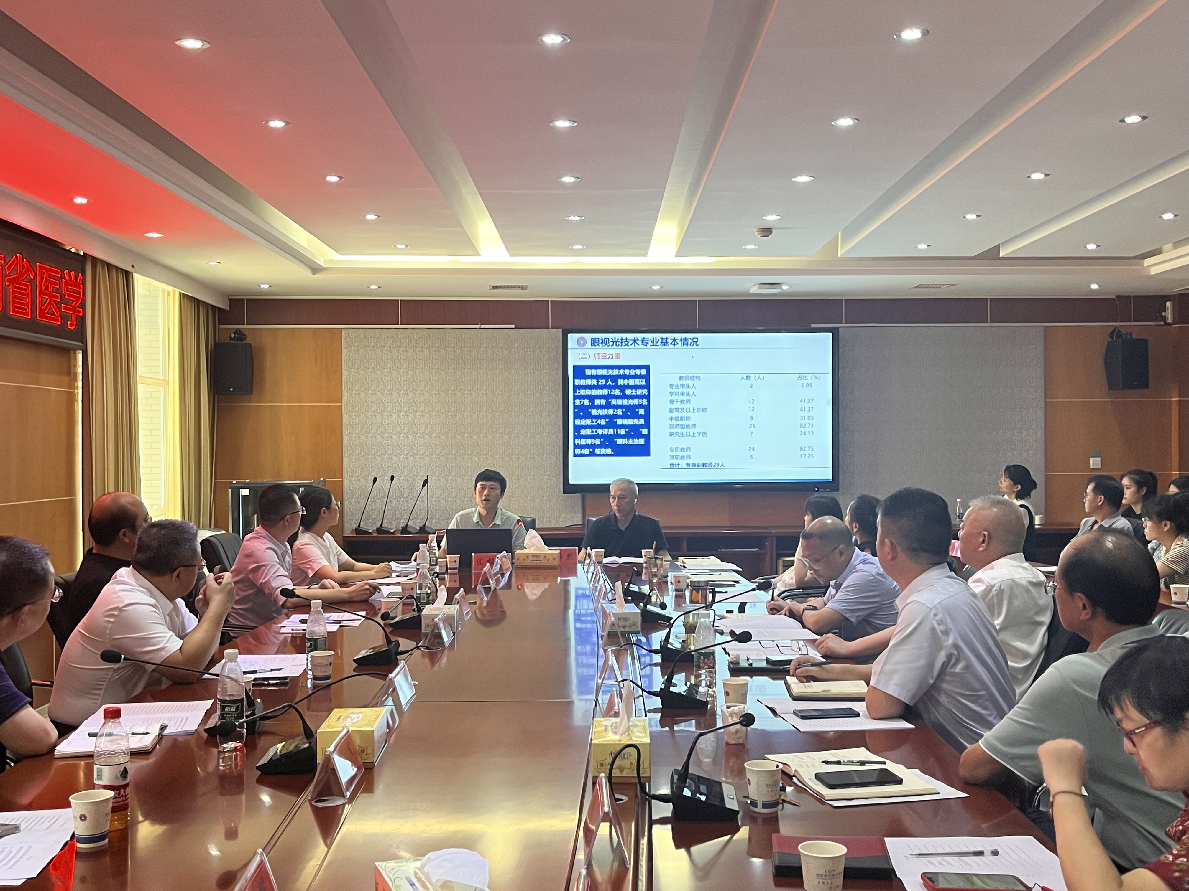 医学部眼视光教研室主任蔡哲彦就我校眼视光技术专业发展、大赛的前期准备工作、赛中技术保障和宣传工作等进行了详细的汇报。