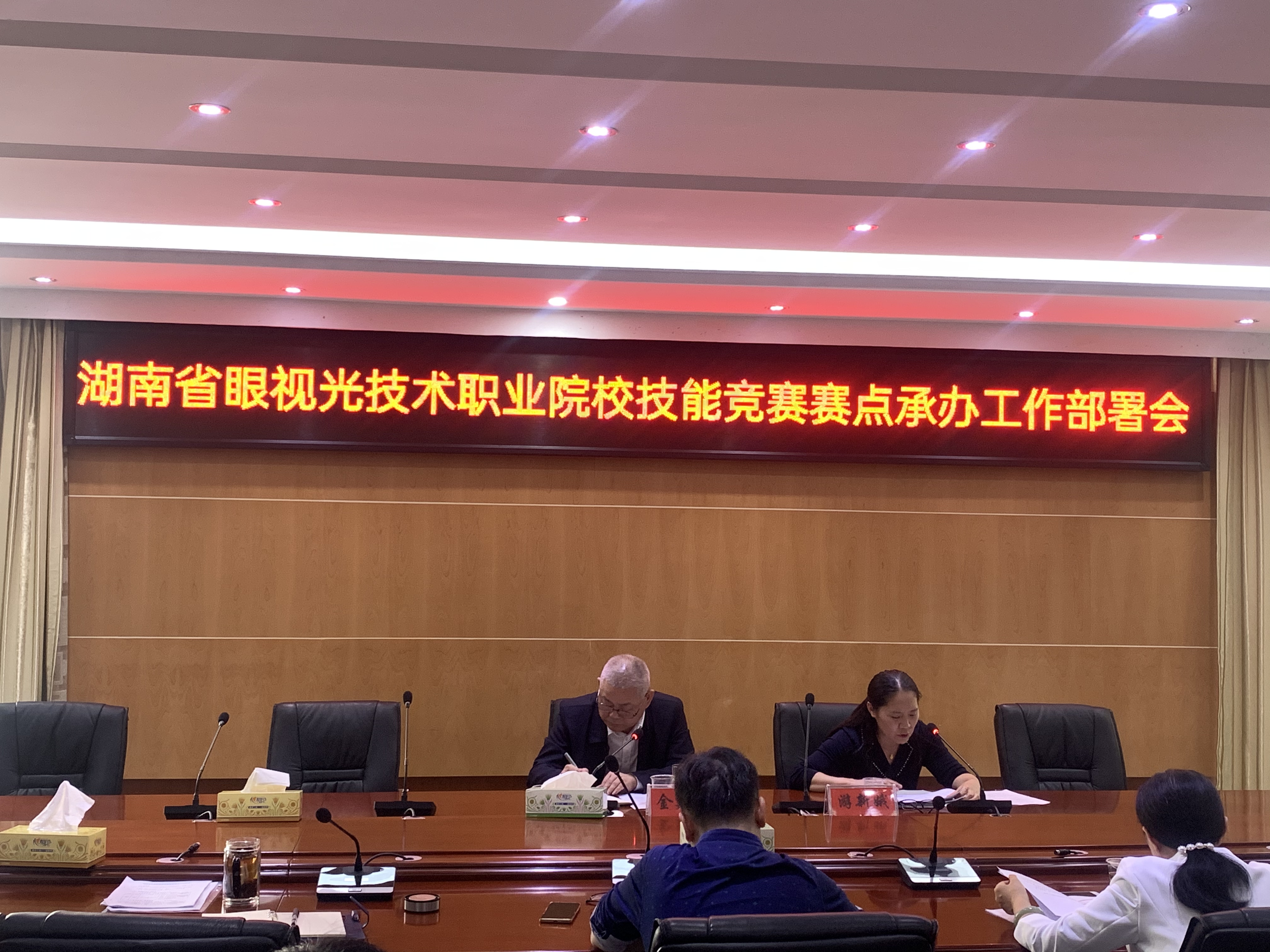10月30日下午,为全力做好大赛筹备工作,提升学校服务水平与协调能力,湖南省眼视光技术职业院校技能竞赛工作部署会在医学部中会议室召开,会议由学校副校长金建雄主持,学校副校长游新娥、医学部常务副主任范国正、医学部党总支书记吴群雄、学校相关部门负责人、医学部副科以上干部及筹备组参加。