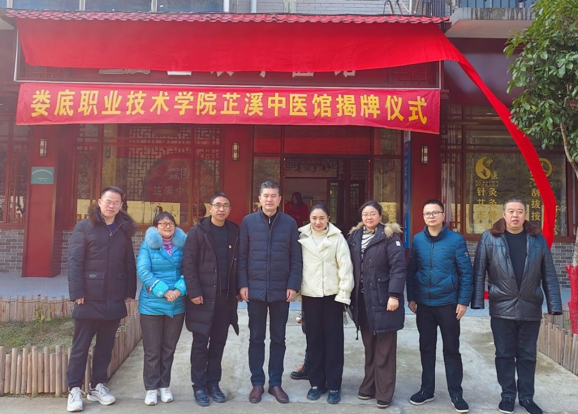 为推动我校“国家乡村振兴人才培养优质校”建设,做好乡村振兴定向定点服务“十百工程”,全面提升乡村振兴、基层医疗服务的质量与中医药文化创新传承的推广应用。12月21日上午,湖南省娄底市新化县炉观镇芷溪村芷溪中医馆揭牌仪式隆重举行。娄底职业技术学院医学部常务副主任范国正、炉观镇党委副书记王书惠、芷溪村党总支书记戴维共同为中医馆揭牌。医学部副主任曾芍、原驻芷溪村工作队负责人林迎辉、临床医学院院长谭芳、临床医学院副院长易新宇及由中医副主任医师吴刚忠带领的一支医疗服务学生小分队一同出席此次活动。