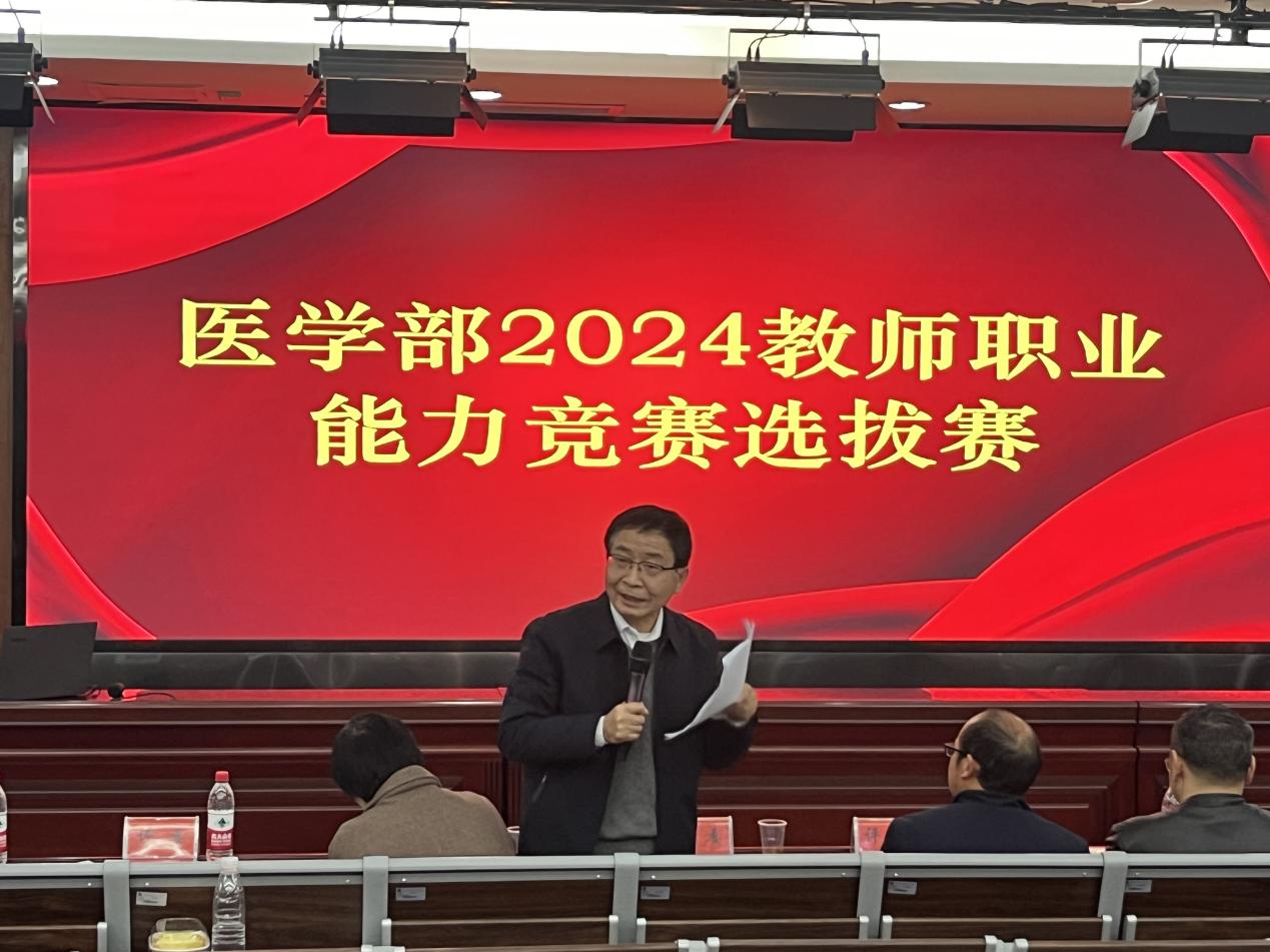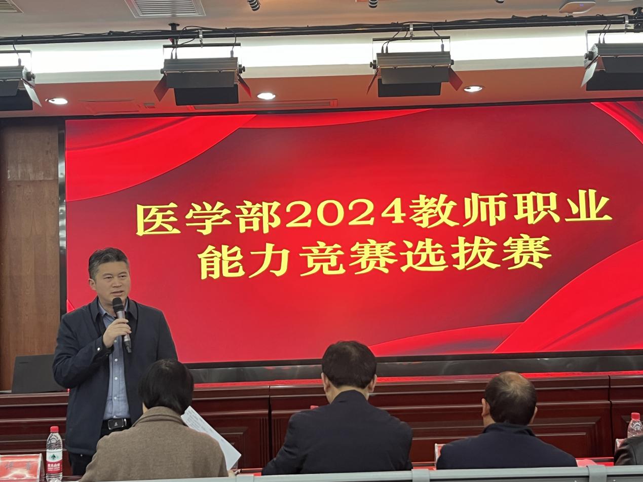 为促进教师教学能力和专业素养的全面提升,同时为2024年湖南省教师职业能力比赛遴选选手,医学部于3月17日举行了2024年教师职业能力竞赛选拔赛,学校副校长金建雄、医学部常务副主任范国正出席,各二级学院院长、副院长及教师代表观摩学习。医学部副主任曾芍主持。