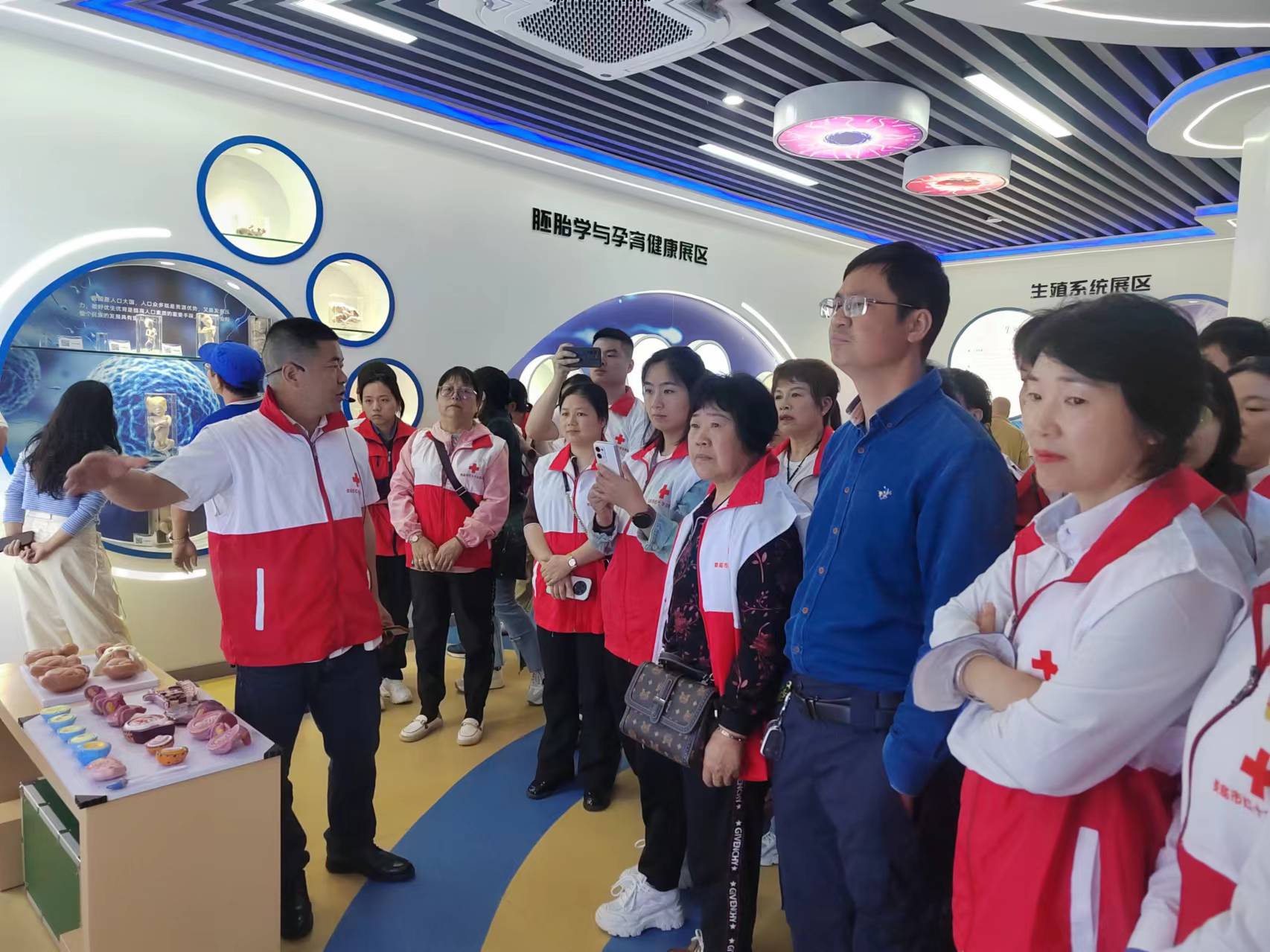 医学部生命科普志愿服务队队长、人体生命科学教研室主任黄国志,带领大家参观了医学部人体生命科学馆的各种标本模型,着重向大家介绍了胚胎发育、九大系统中各种常见疾病的预防及急救知识,基础医学院院长刘永堂介绍了生命科学馆建设的目的与与意义及今后利用该馆服务社会的规划。