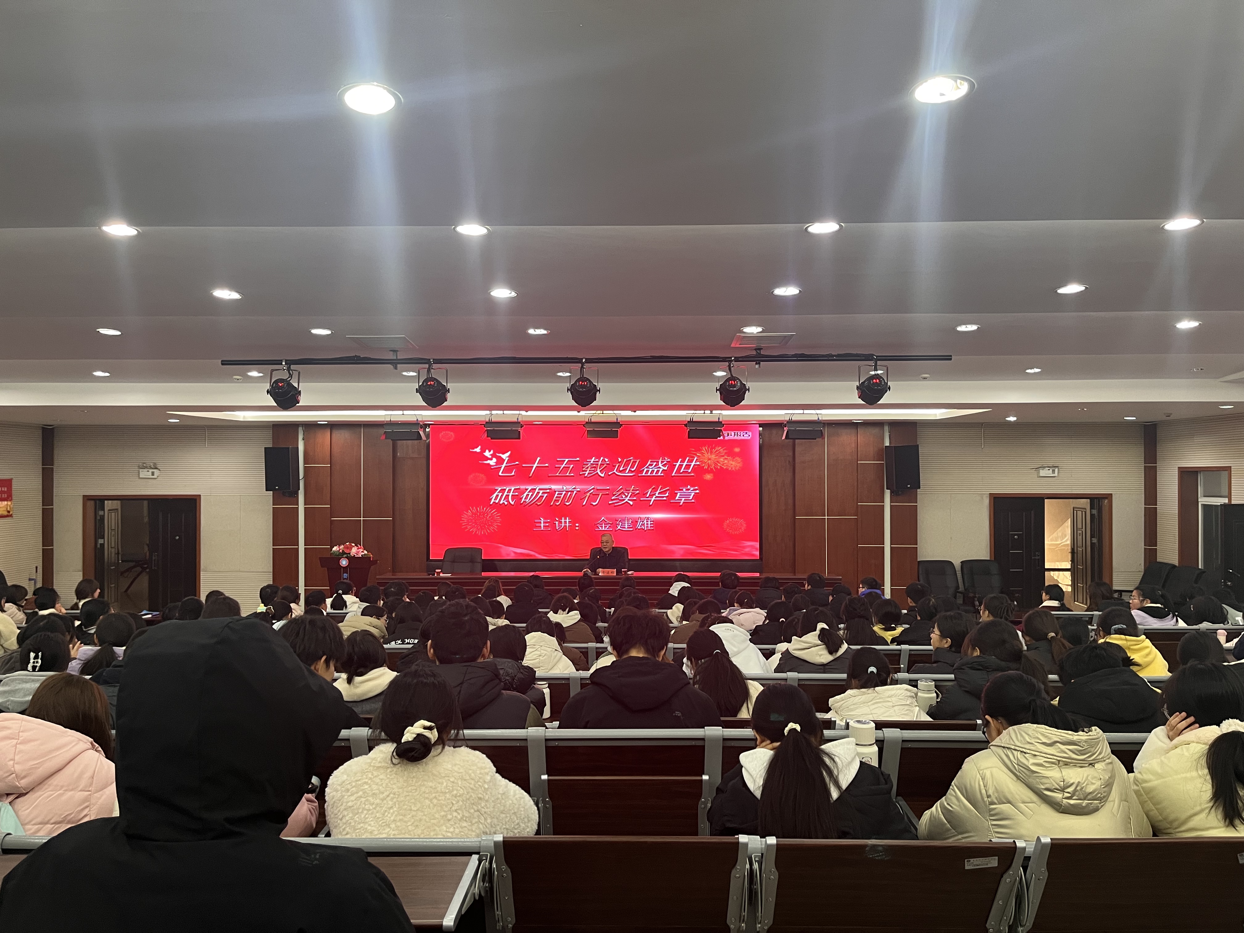 为深入贯彻党的二十届三中全会精神,扎实推进思政教育工作,持续落实立德树人根本任务,促进学生全面发展,12月19日,学校党委委员、副校长金建雄以“七十五载迎盛世,砥砺前行续华章”为主题,为医学部同学们带来了一堂生动而深刻的思政课。
