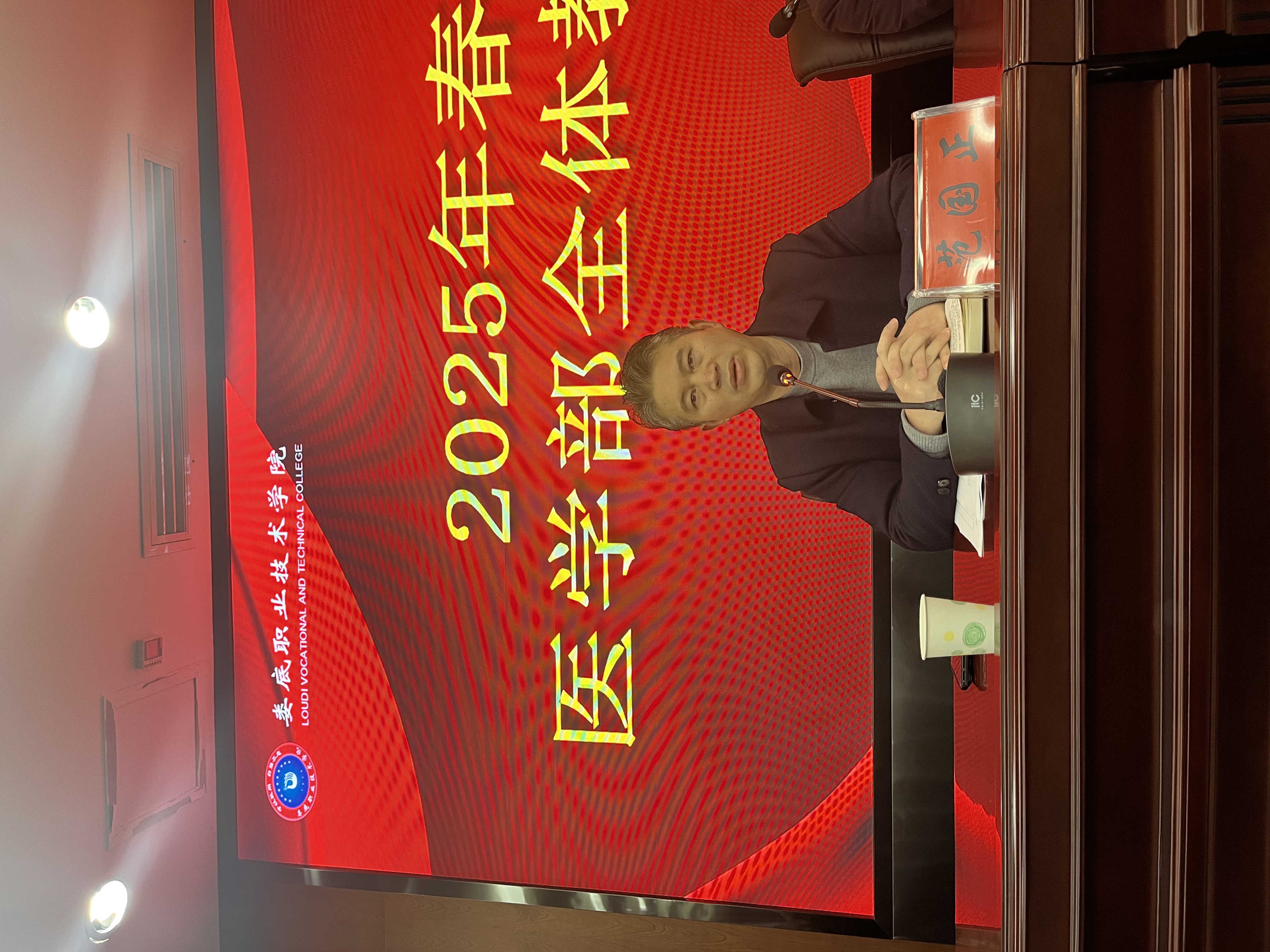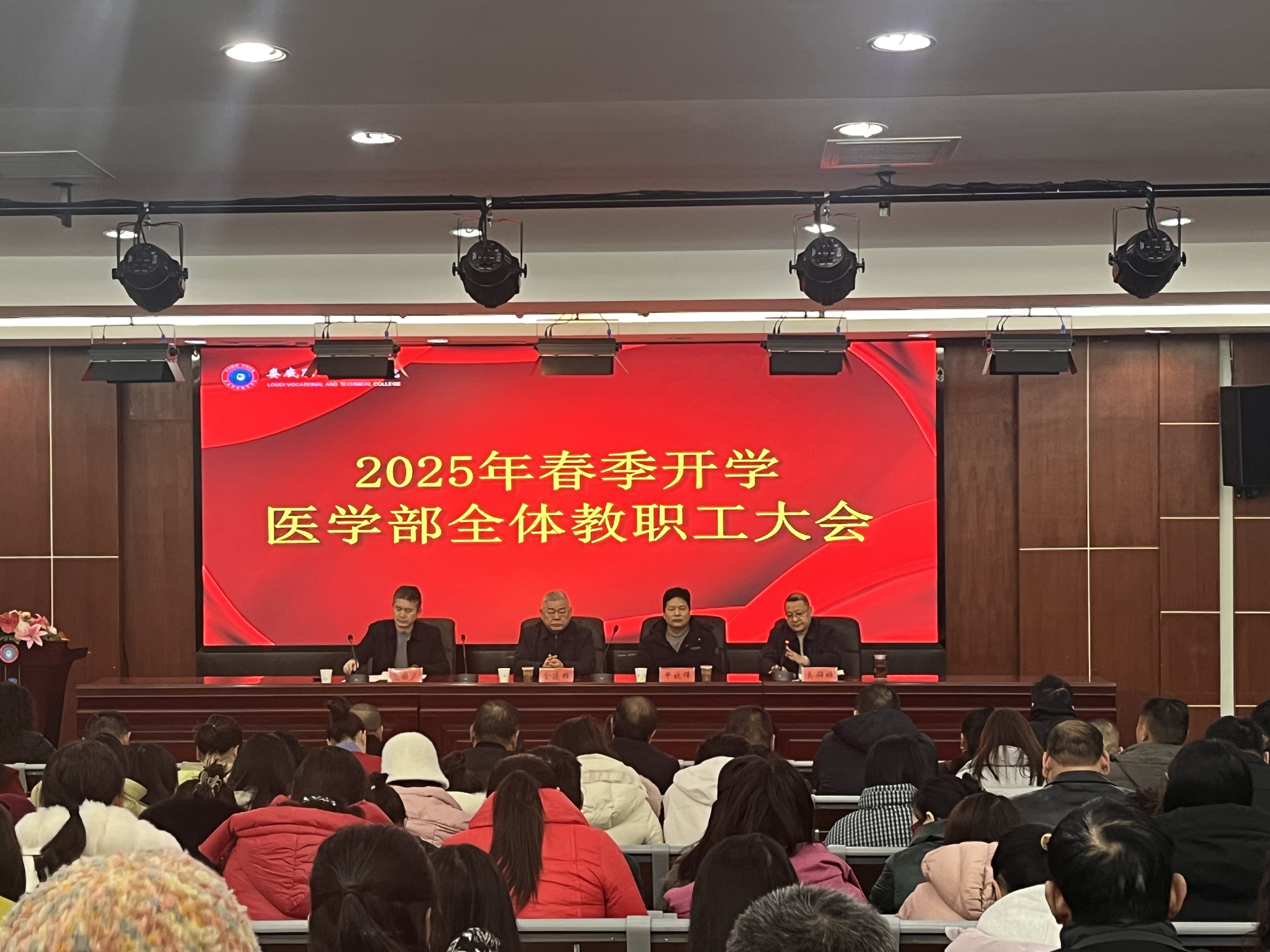 为扎实做好新学期各项工作,确保开学工作平稳有序高效进行,2月21日上午,医学部在二楼学术报告厅召开2025年春季开学初全体教职工大会。娄底职业技术学院副校长金建雄、申晓伟、医学部常务副主任范国正发表讲话,医学部党总支书记吴群雄主持会议,全体医学部教职工参会。