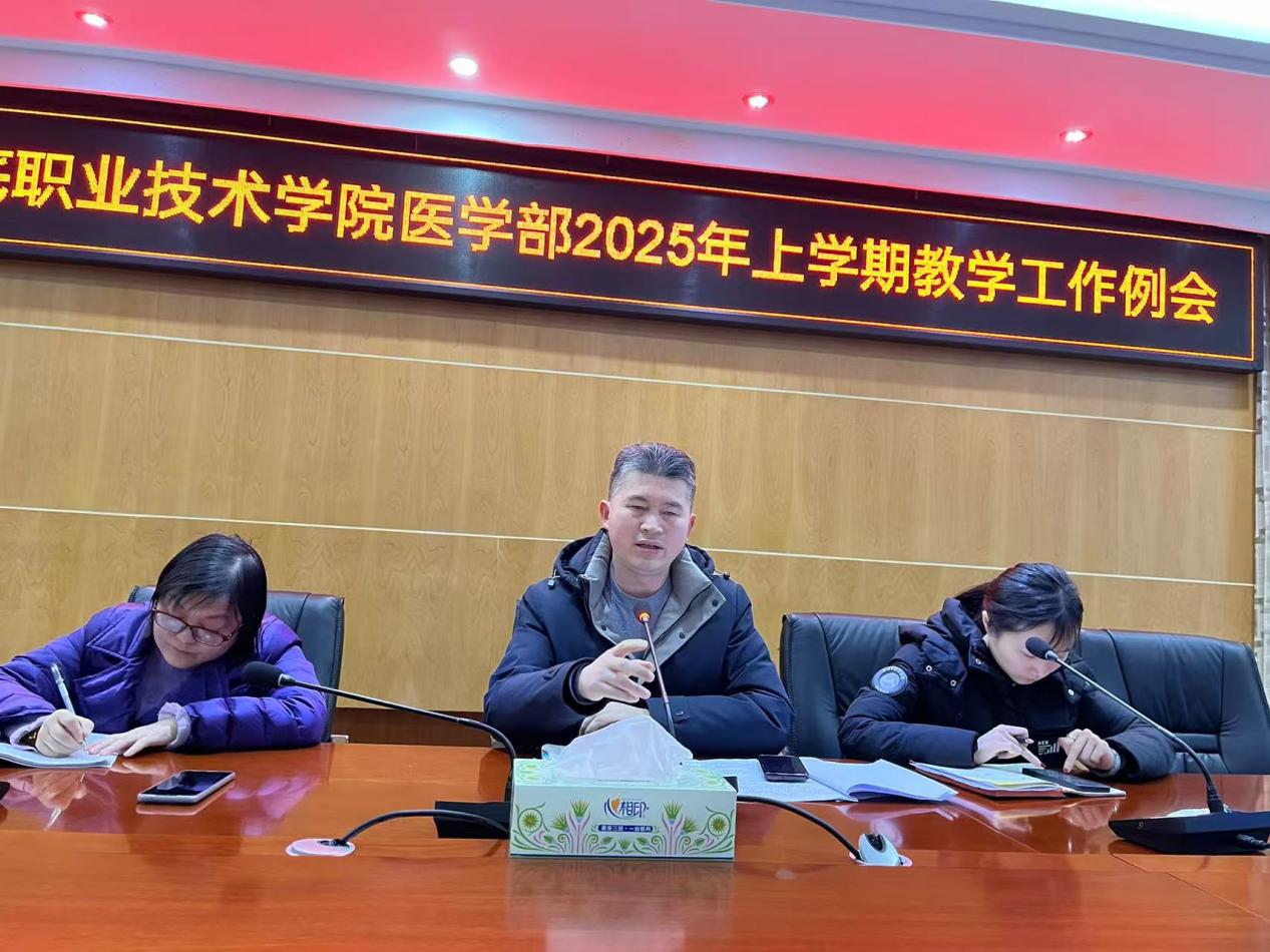 会议伊始,各教学管理部门负责人分别就分管工作进行了总结与展望。教务科负责人刘海雄围绕教学运行和保障工作,详细汇报了上学期教学任务的完成情况,并对新学期课程安排、教学质量监控等工作进行了部署。实验实训管理科负责人曹滢丹总结了实验实训工作的成效,提出了新学期实验室建设与管理的新目标。医院工作科负责人曾芍则重点介绍了医教协同及学生实习工作的进展,并对接下来的实习安排和医教协同项目进行了具体规划,同时就教师教学能力竞赛、省级优秀人才培养项目申报、教材及资源库建设等重点工作进行了详细部署。