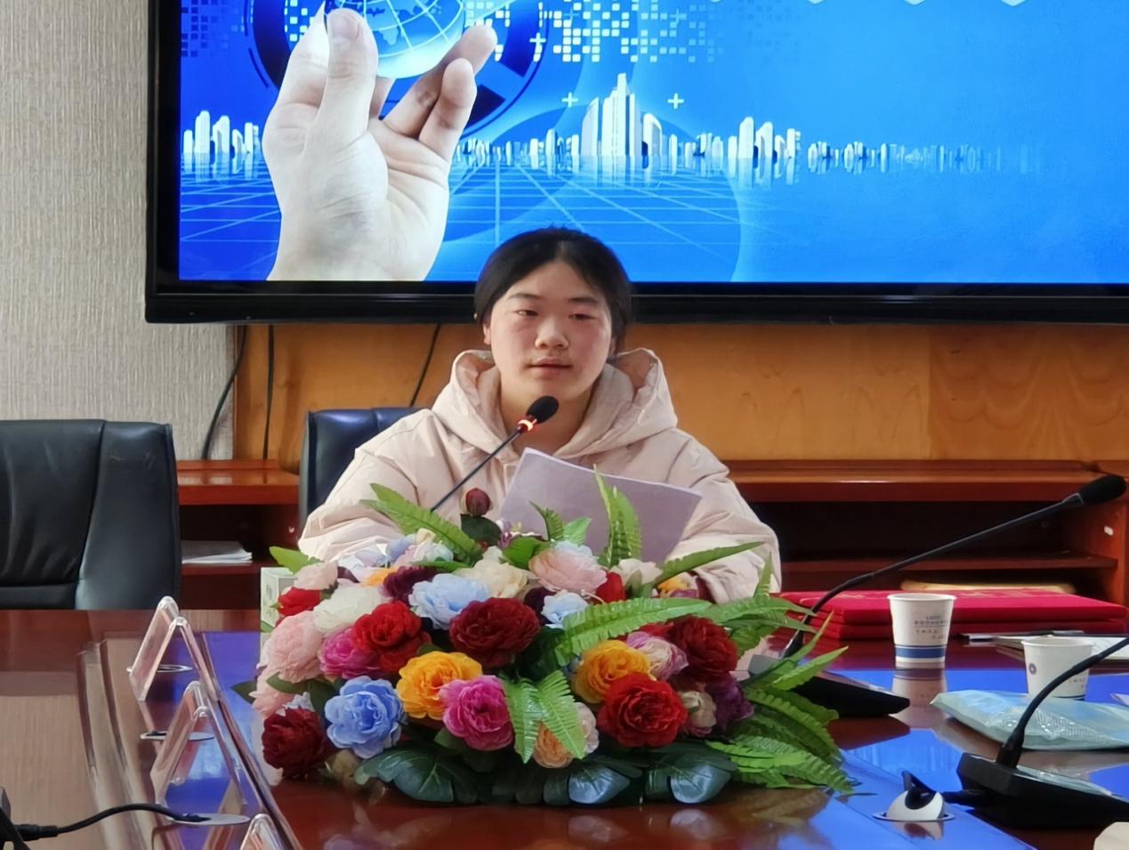 接着,爱眸订单班学生代表曹奕凡发言,她代表同学们感谢学校和公司给予的宝贵机会,深知双重任务,承诺定不负学校、公司的厚望,学好、学精专业技能,为社会贡献自己的力量。