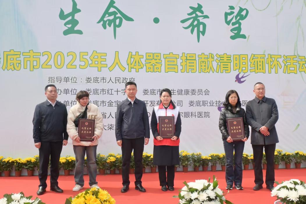 2025年3月31日上午10时,“娄底市2025年人体器官捐献缅怀纪念活动”在娄底市金宝灵塔园的人体器官遗体捐献纪念园举行。娄底市政协、人大、卫建委、红十字会的多位领导出席。娄底职业技术学院医学部常务副主任范国正、基础医学院院长刘永堂、副院长贺丹毅、解剖教研室主任黄国志、团总支书记曾子毅携医学部师生志愿者们参与。