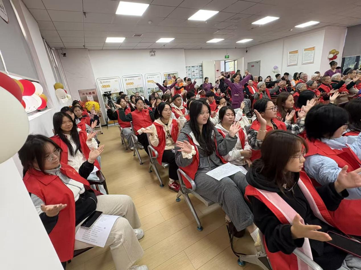 表演结束后,学子们主动走近长者:耐心倾听老人讲述过往岁月,细致解答健康护理疑问,协助工作人员整理房间、分发物资。真诚的互动中,长者们的笑容格外灿烂。