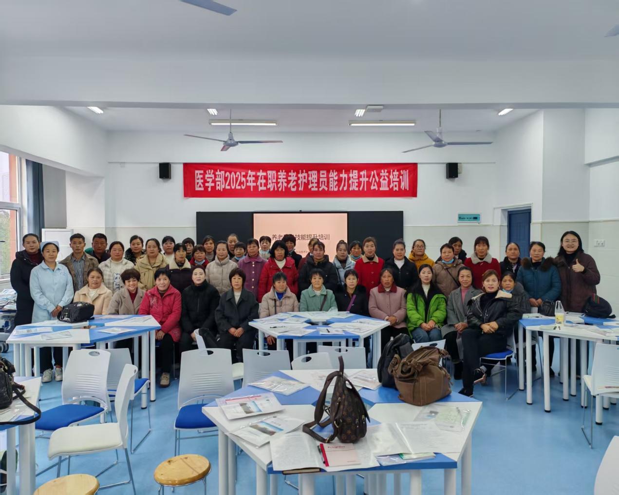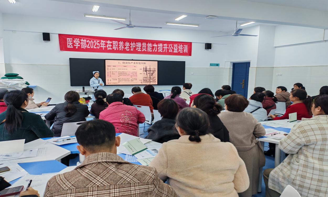2025年12月28日,娄底职业技术学院医学部精心组织的在职养老护理员能力提升公益培训活动圆满落幕。本次培训以提升一线养老护理员专业素养为核心目标,得到娄底市区及各县市养老机构的积极响应,共有50名在职护理员全程参训并顺利取得结业证书。