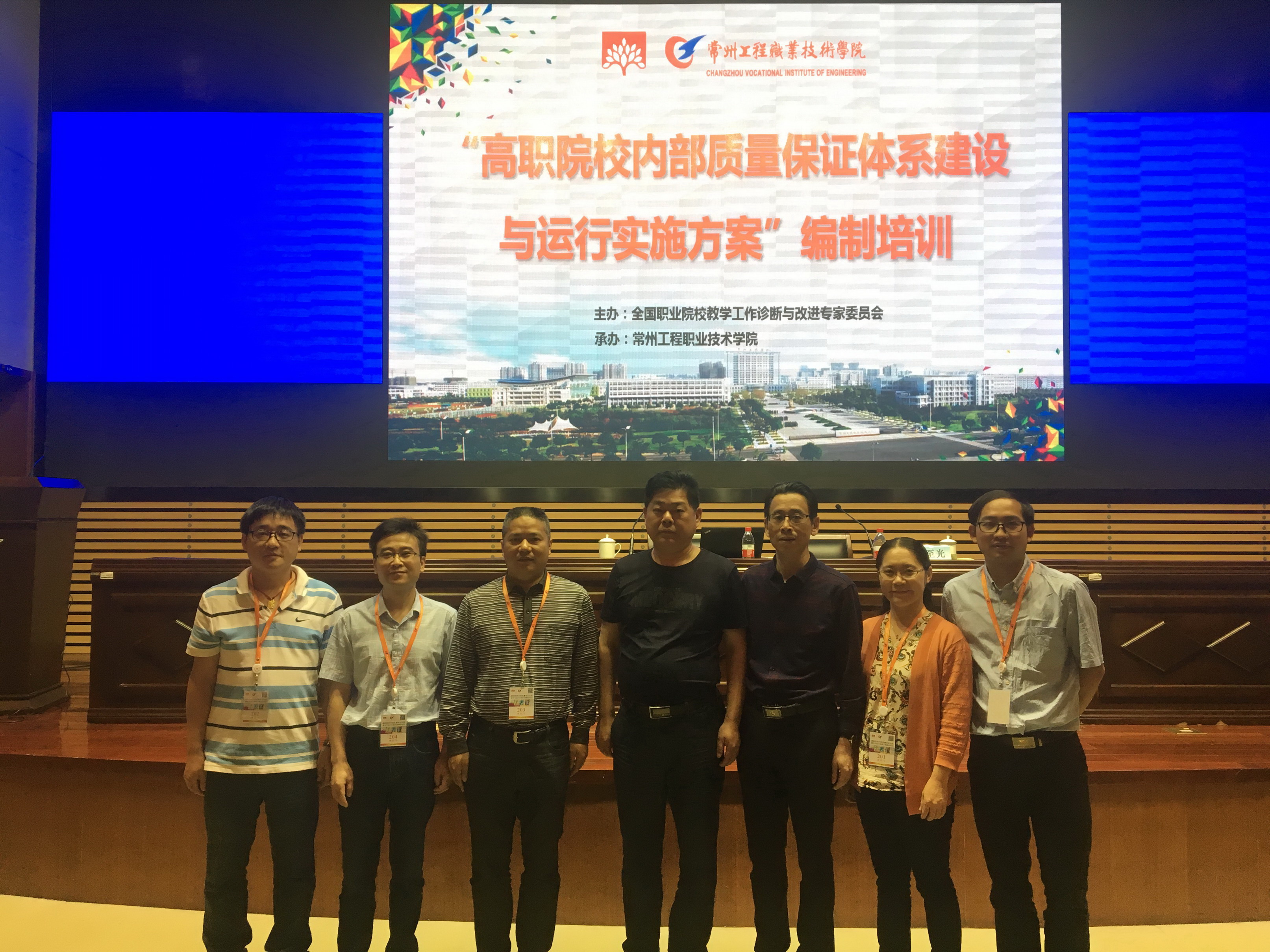 5月14日至17日,由全国职业院校教学工作诊断与改进专家委员会举办的“高职院校内部质量保证体系建设与运行实施方案”编制培训班(第七期)在常州工程职业技术学院举办。学院副院长龙伟、金建雄带领人事处、教务处、学生处和质管办负责人参加了此次培训。