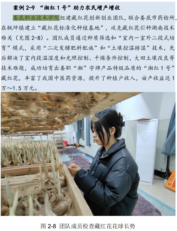 《报告》显示,2023年湖南省共有74所高职院校(含一所职业教育本科学校)提交了院校质量年度报告。省教育厅从人才培养、服务贡献、文化传承、国际合作、产教融合、发展保障六个维度,经过严格筛选,从40所院校中挑选了88个典型案例和60张高质量图片,全面展示了我省高等职业教育的发展成果。我校的“创新‘双师型’教师培养路径,促进教师技能提升”“‘湘红 1 号’助力农民增产增收”“‘十百工程’助力乡村振兴”三个案例和两张高质量图片成功入选。