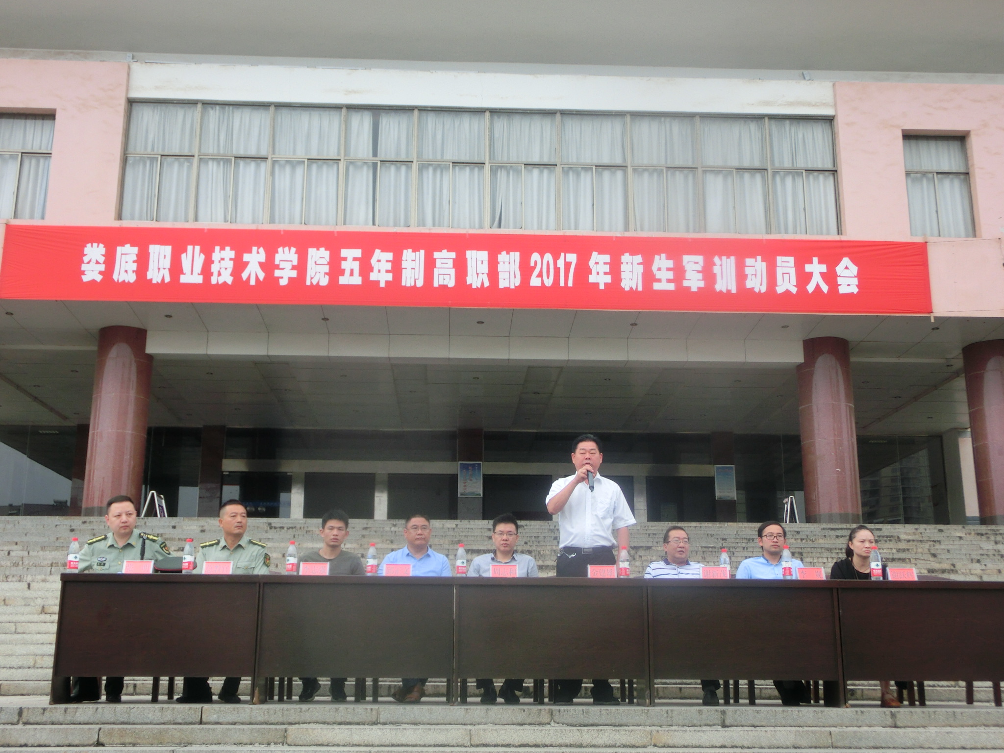 周志和副院长就军训的意义与目的为学生们进行了阐述,建议学生们在军训期间不仅要学军事、学技术,更要学习军人高尚的品德,雷厉风行的作风,严明的组织纪律观念。希望学生们能够通过军训领悟到严于律己和团结的重要性,向17级新生表达了自己严格的要求与期待。